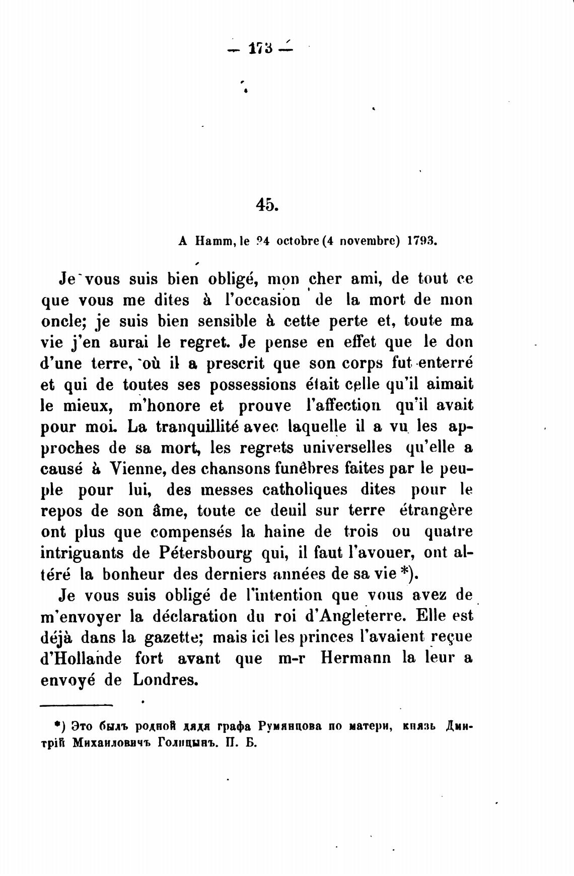 в) Это быль родной дядя графа Румянцова по матери, князь Дми-