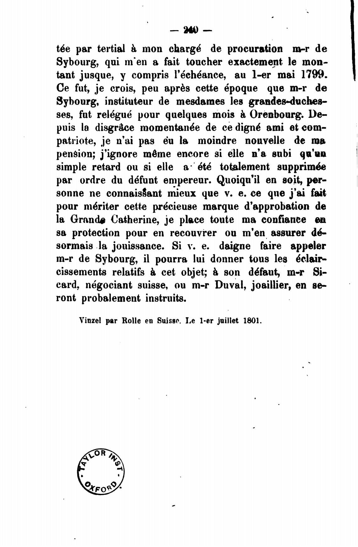 Vinzel par Rolle еп Suisso. Le l-er juillet 1801.