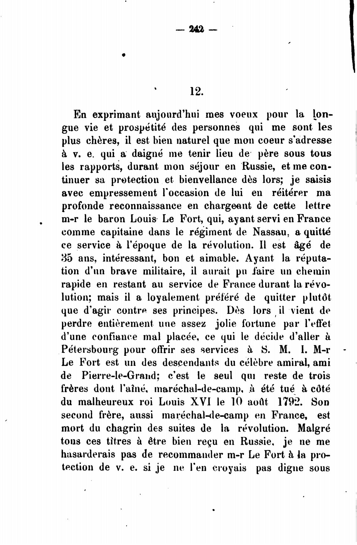 m-r le baron Louis• Le Fort, qui, ayant servi еп France