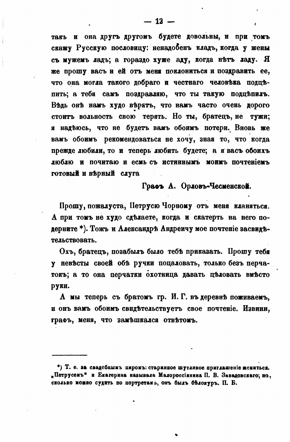 А мы теперь съ братомъ гр. И. Г. въ деревв•В поживаемъ,