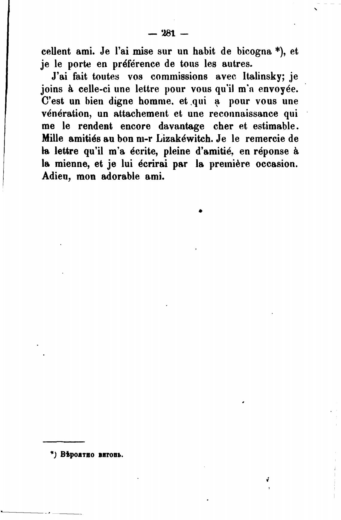 Mille amiti6s аи bon m-r Lizak6witch. Је le remercie de