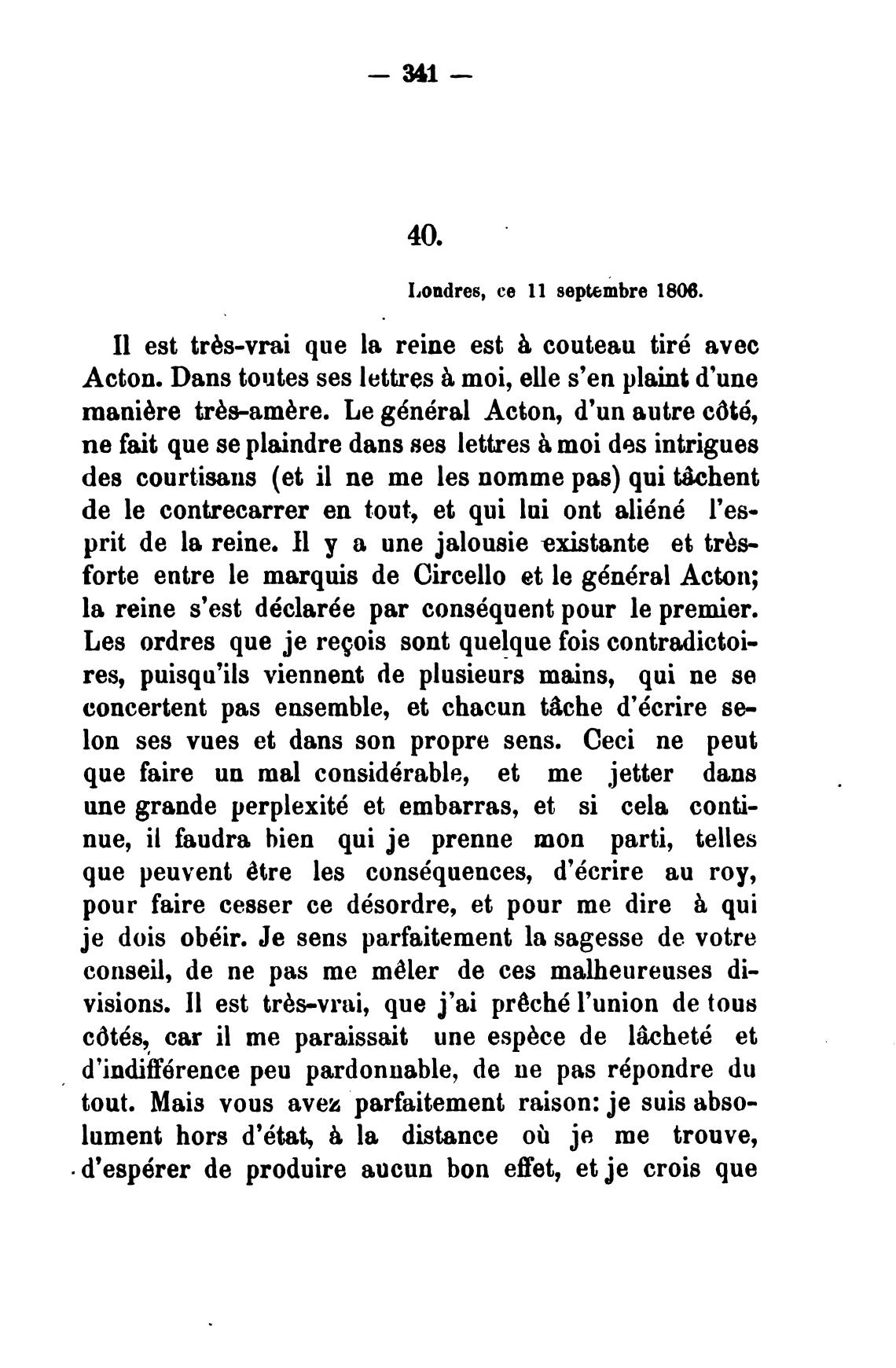forte entre le marquis de Circello et le g6n6ral Acton;