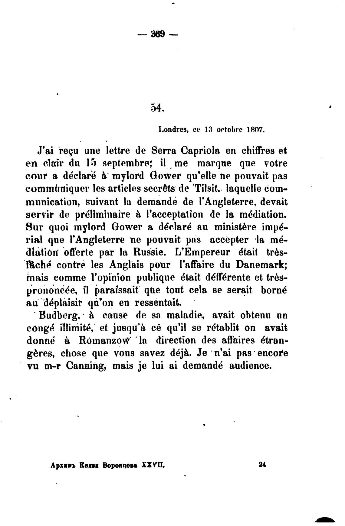 Sur quoi mylord Gower а d6elar6 аи ministbre imp6-