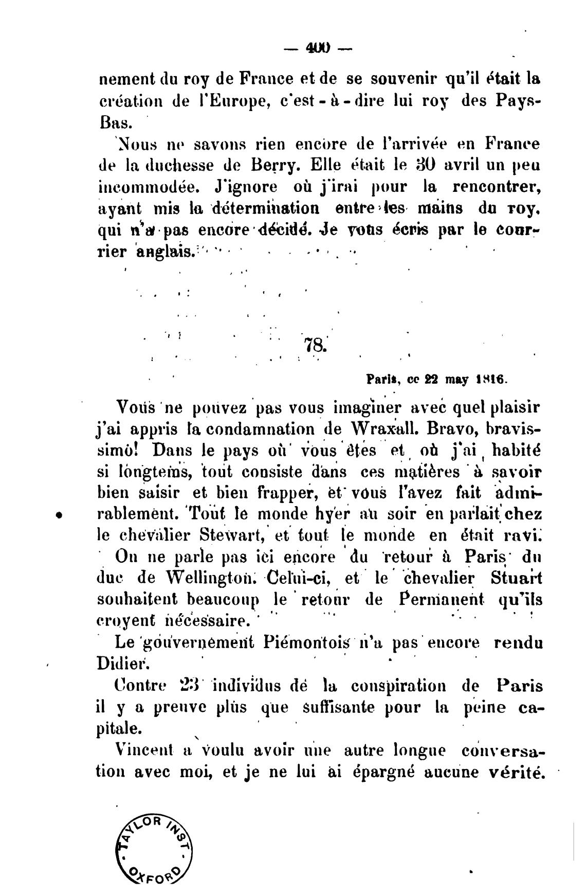 j'ai appris Га condamnation de Wraxall. Bravo, bravis-