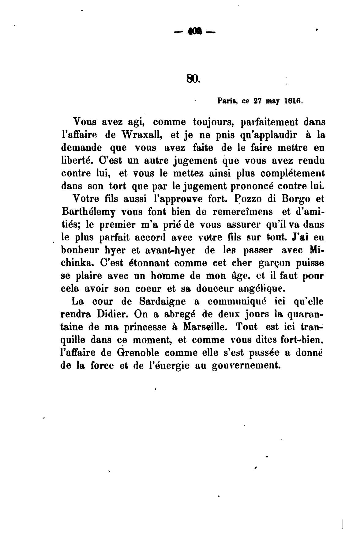 Votre flls aussi l'approuve fort. Pozzo di Borgo et