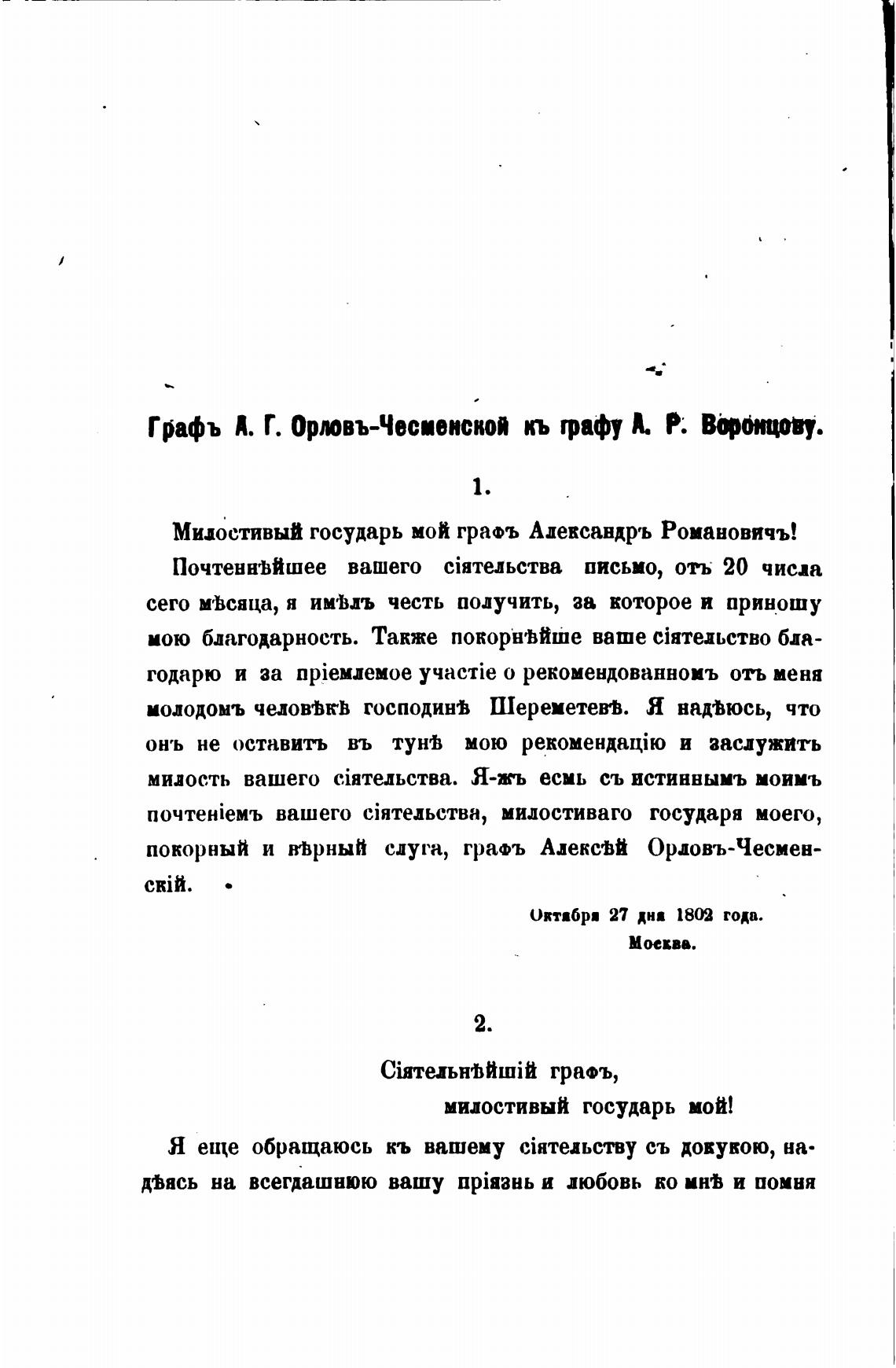 Графъ Я. Г. Ормвъ-Чесиенской кь графу А. Р. ВФ0нцову.