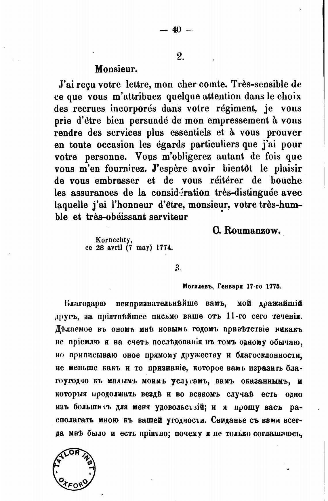 Могилевъ, Генвара 17-го 1776.
