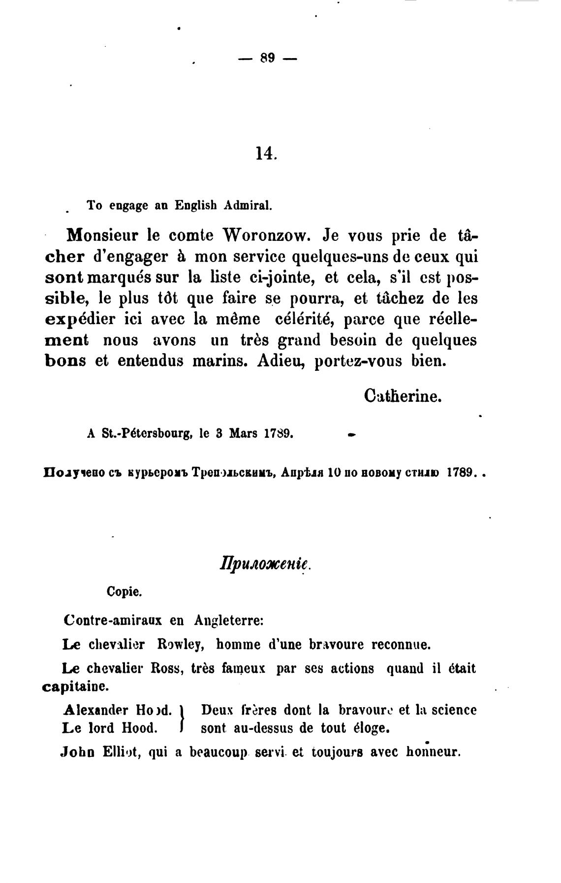 А St.-P6tersbourg, le З Mars 1789.