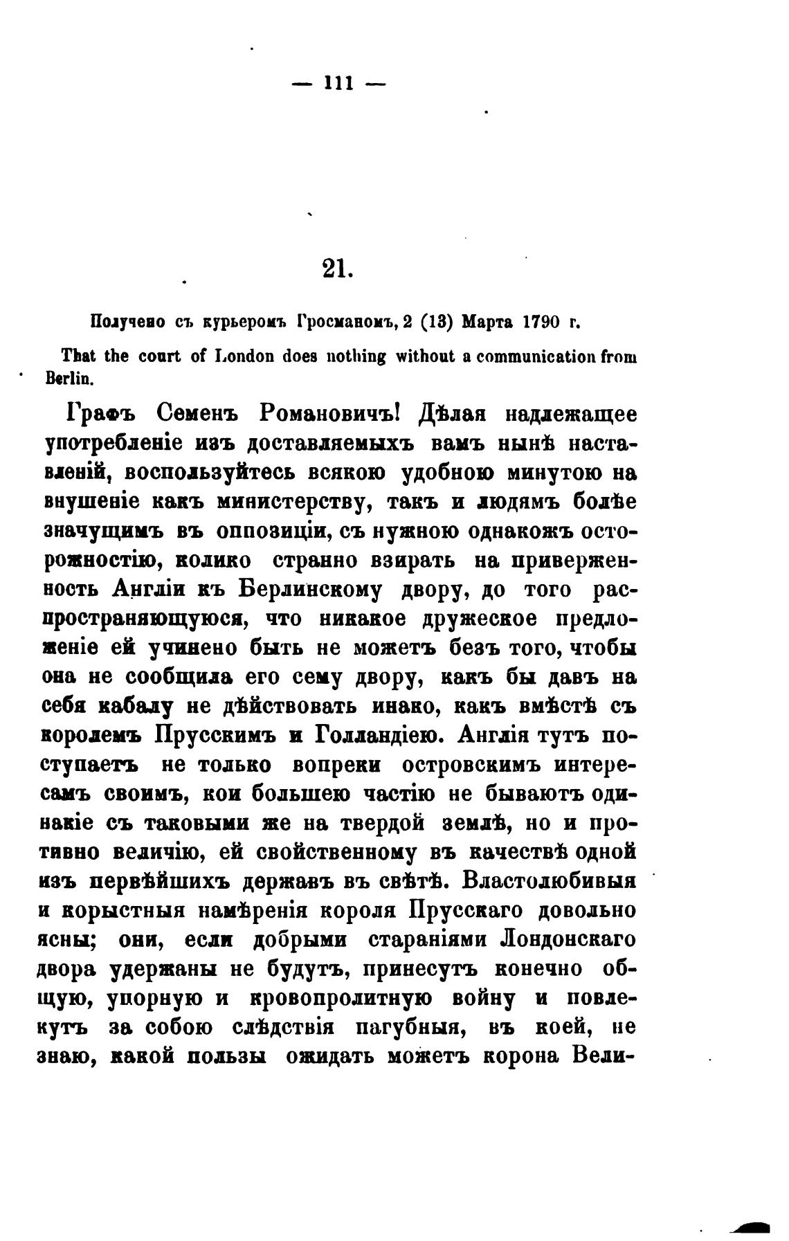 Получено съ курьеромъ Гросманомъ, 2 (13) Марта 1790 г.