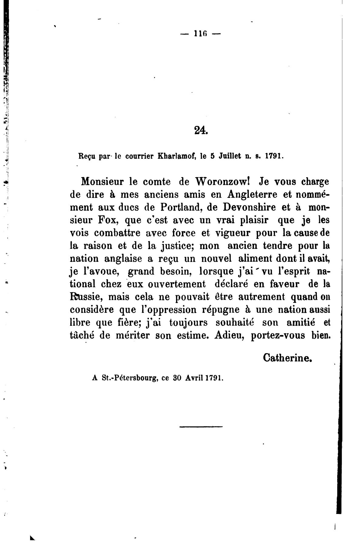 А St.-P6tersbourg, се 30 Avril 1791.