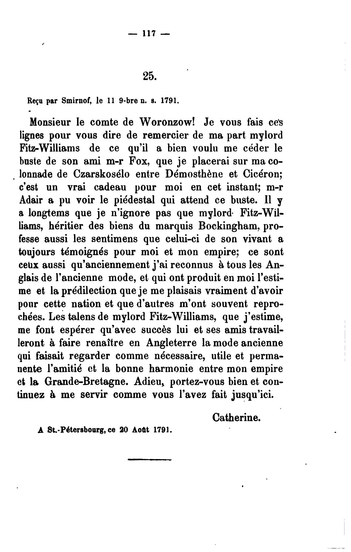 Re€u par Smirnof, le 11 9-bre п. 8. 1791.