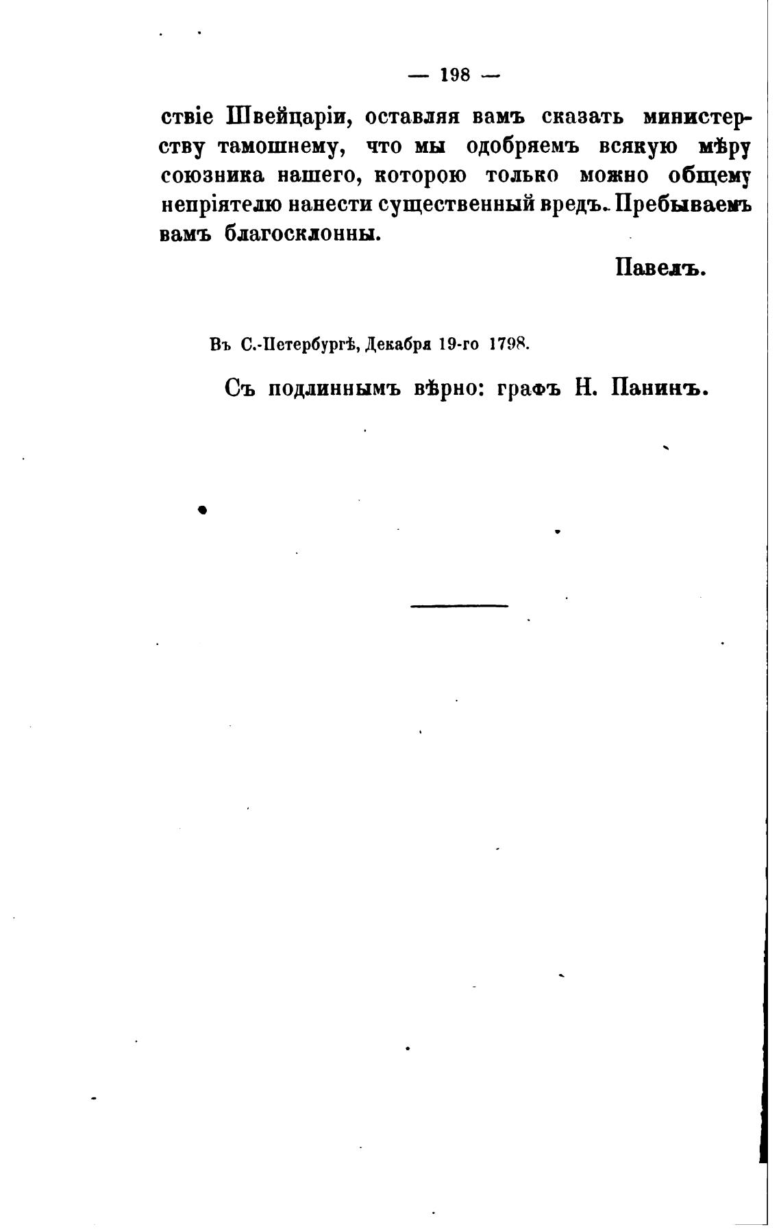 Съ подлиннымъ вгЬрно: граФъ Н. Панинъ.