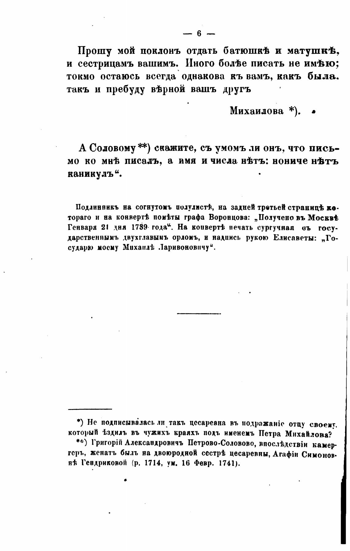 *) Не подписывалась ли такт, цесаревна въ подража}йе отцу своему.