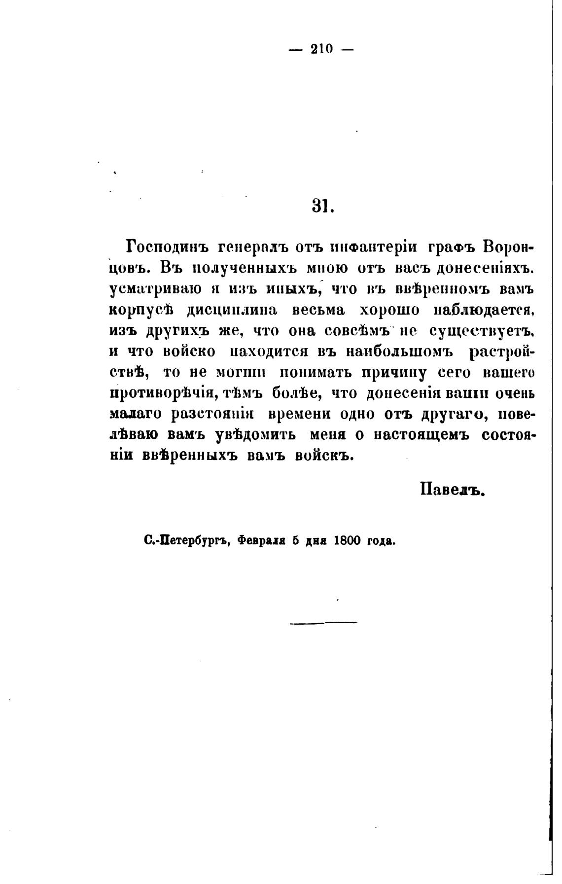 С.Летербургъ, Февриа 5 дна 1800 года.