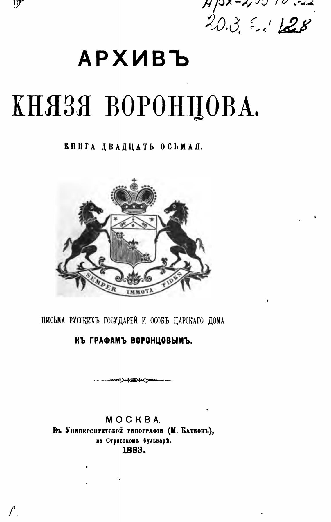 ПИСЬП РУССКИХЪ ГОСУДАРЕЙ И ЦАРСКАГО ДОИ