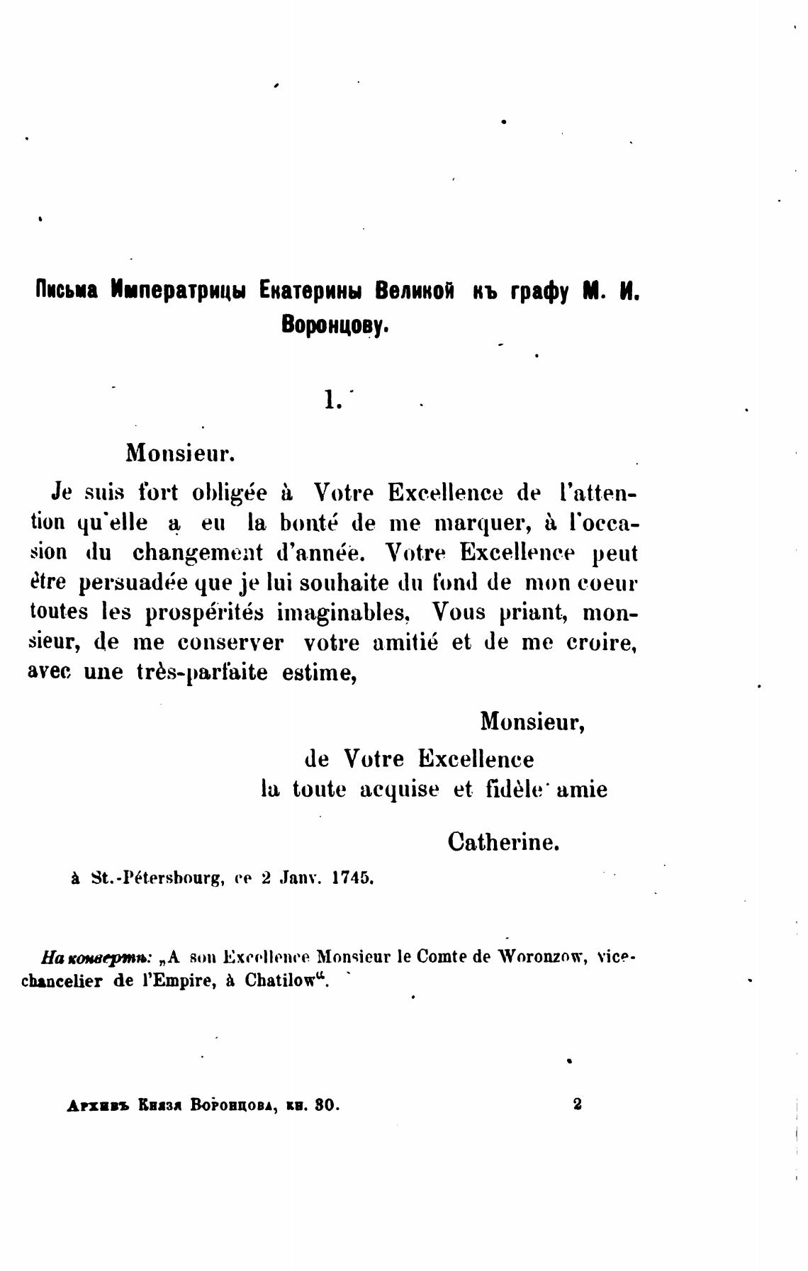 St.•P6tersbourg, ее 2 Janv. 1745.