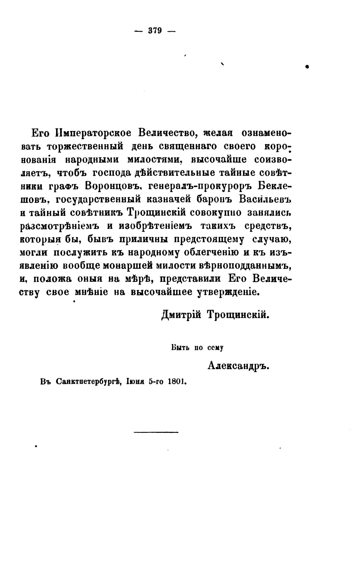 Въ Санктиетербурњ, Июня 5-го 1801.
