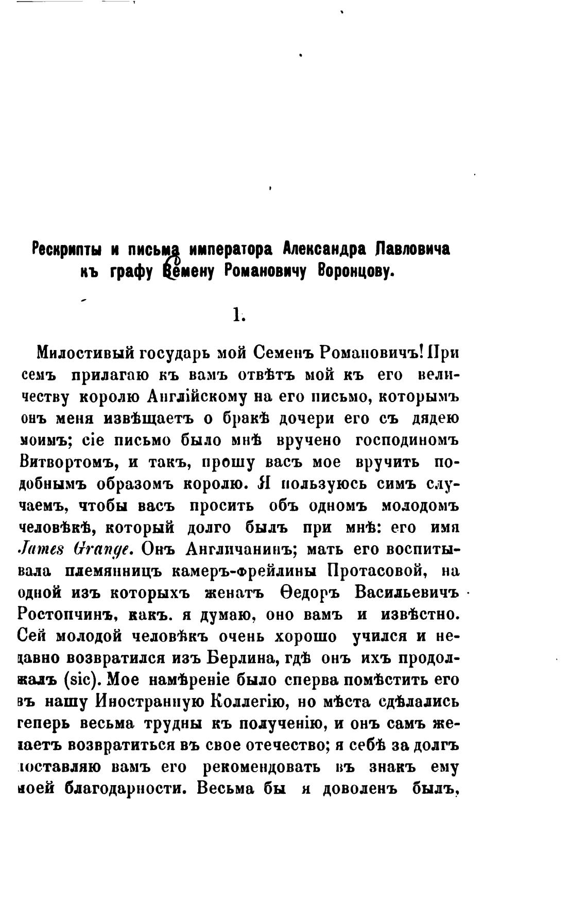 кь графу Романовичу Воронцову.