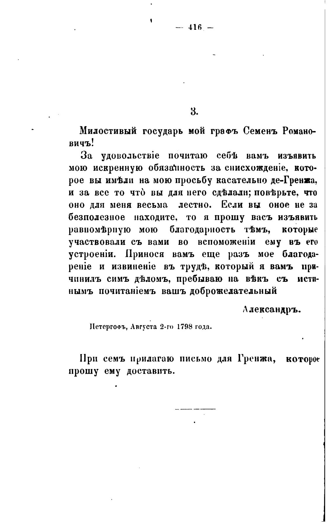 Милостивый государь мой граФъ Семенъ Романо-