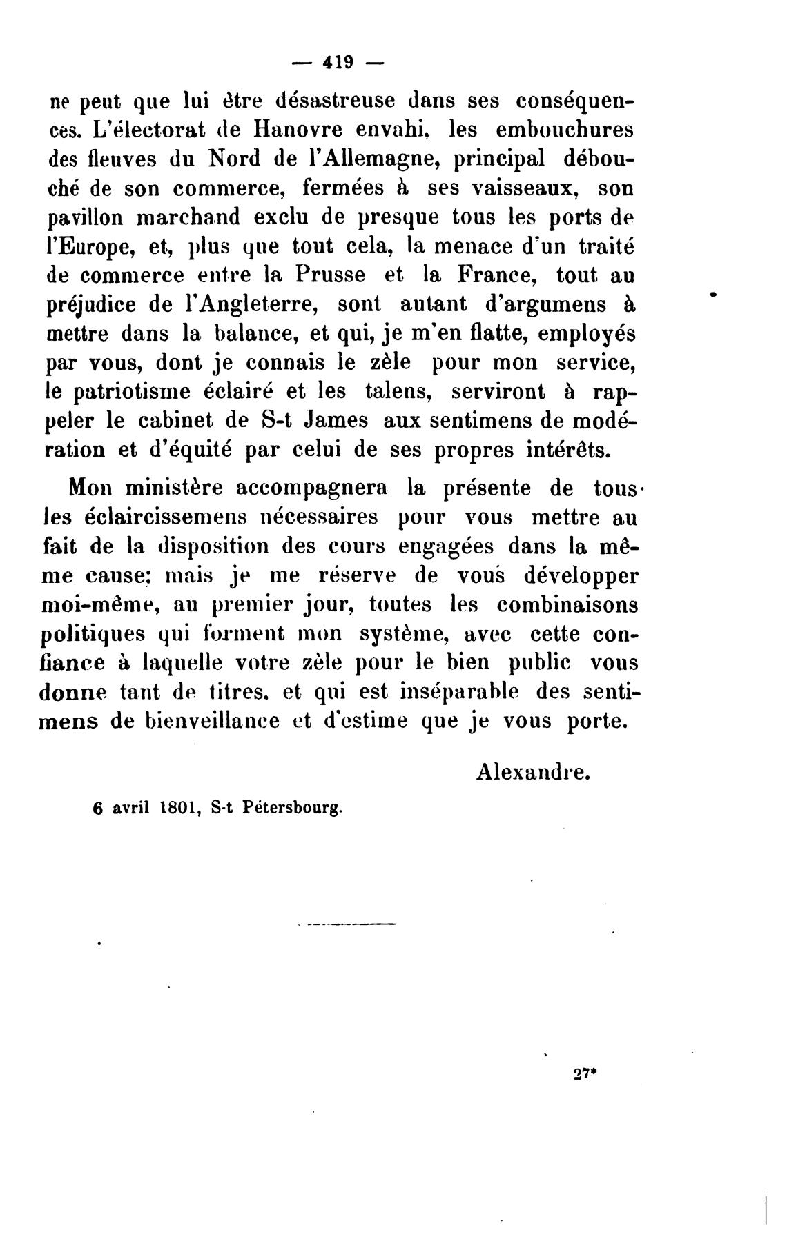 6 avril 1801, S-t P6tersbourg.