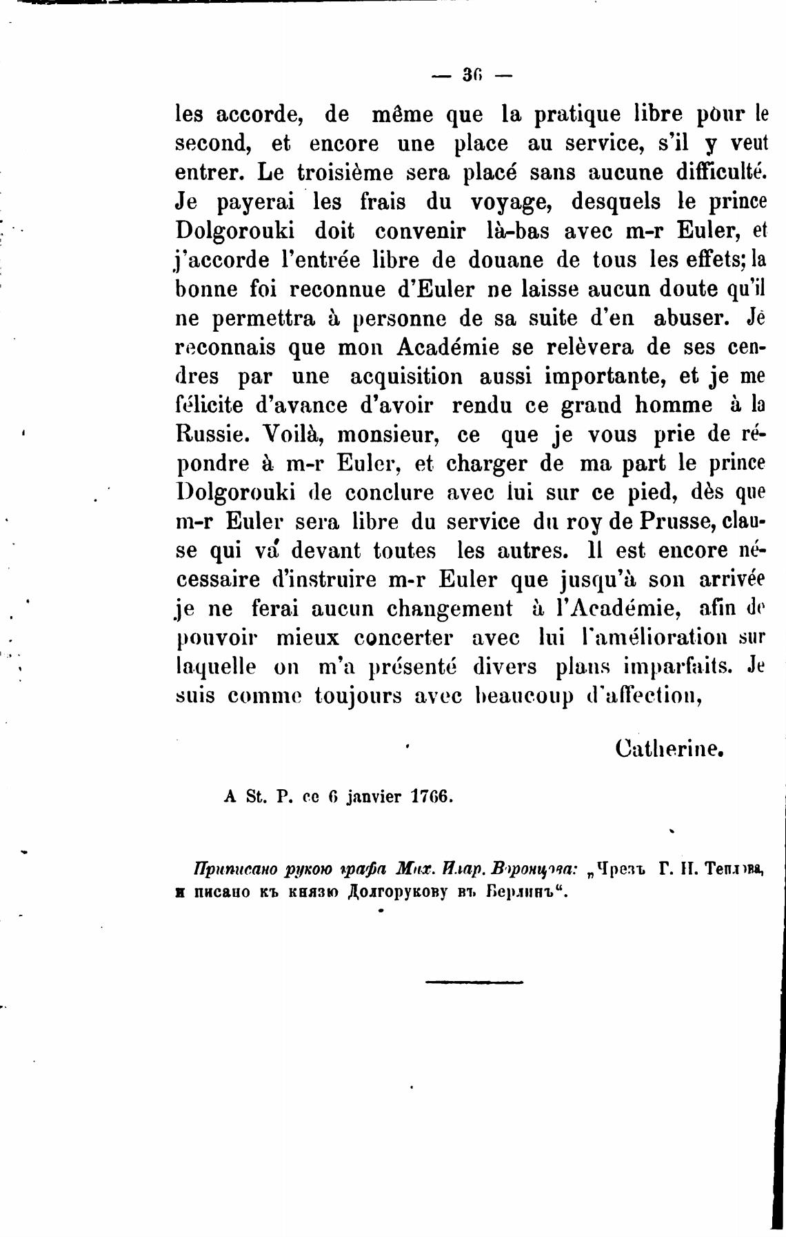 А St. Р. с.с 6 janvier 1766.