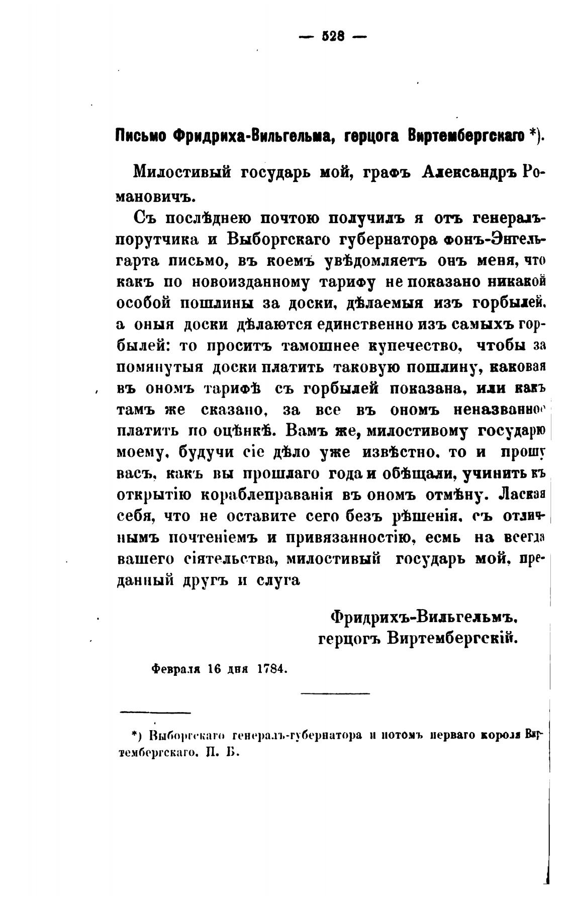 Письмо ФридрихаЛильгельиа, герцога Виртеибергскаго
