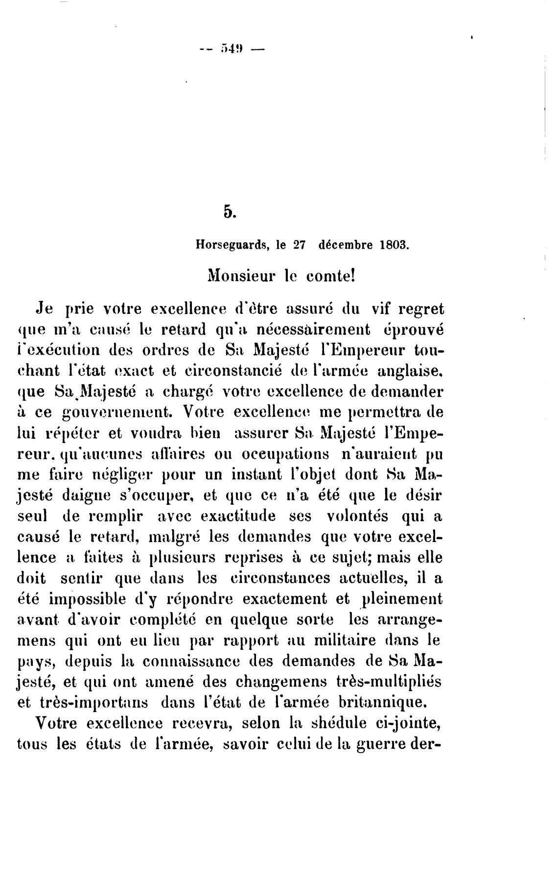 Horseguards, le 27 d6cembre 1803.