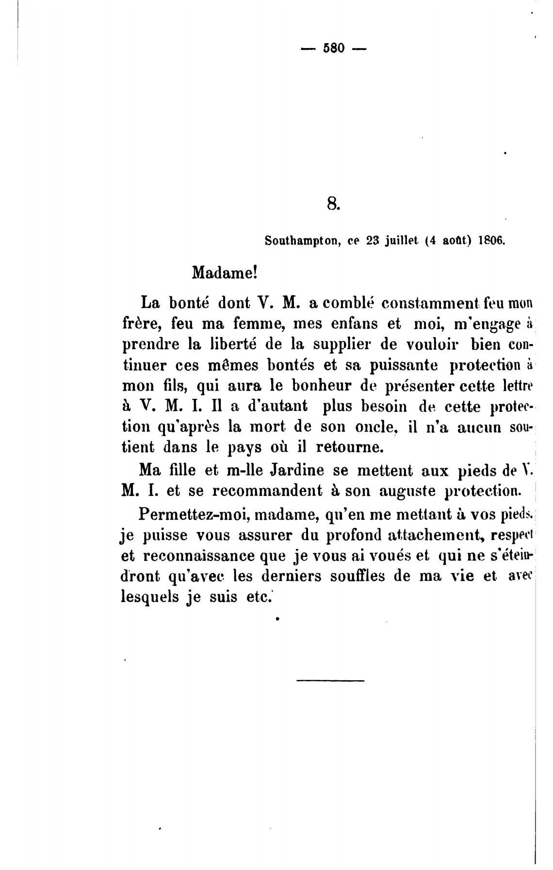 Southampton, се 23 juillet (4 a00t) 1806.