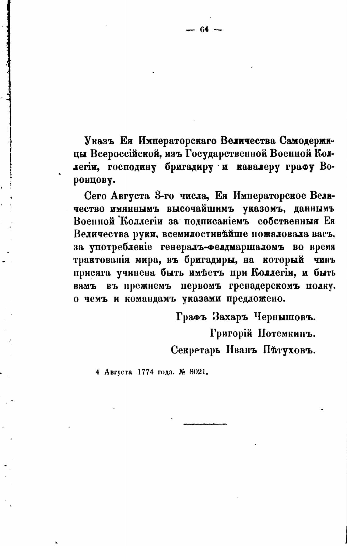 4 Авгус.та 1774 года. 8021.