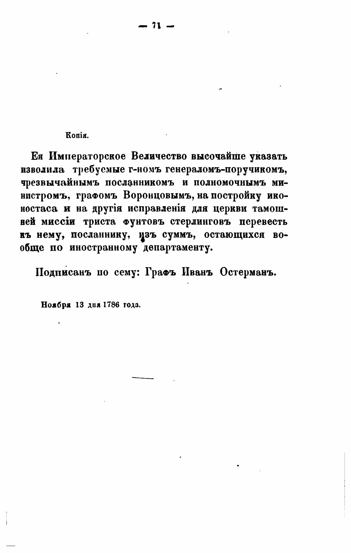 нистромъ, графомъ Воронцовымъ, на постройку ико-