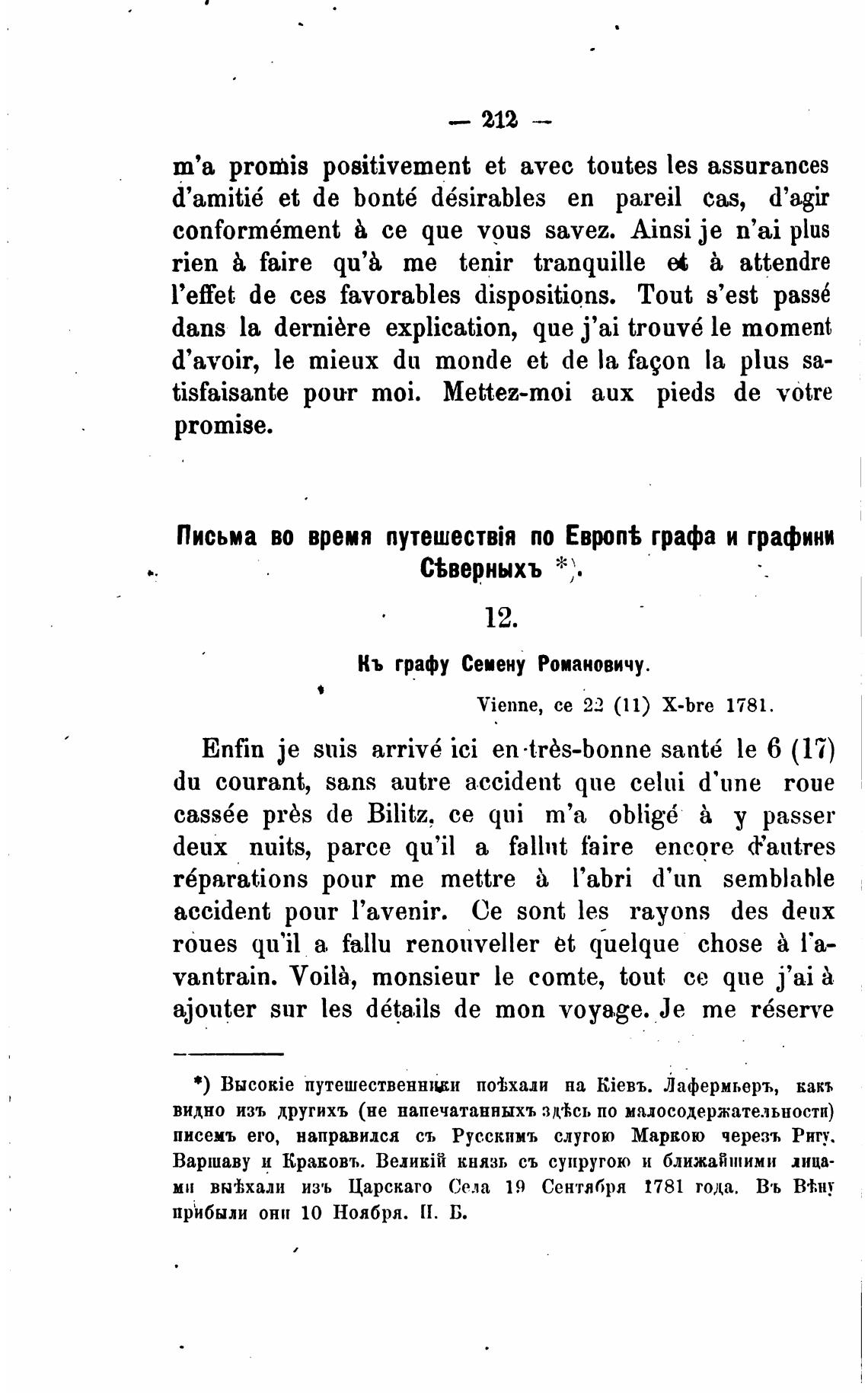 Vienne, се 22 (П) X-bre 1781.