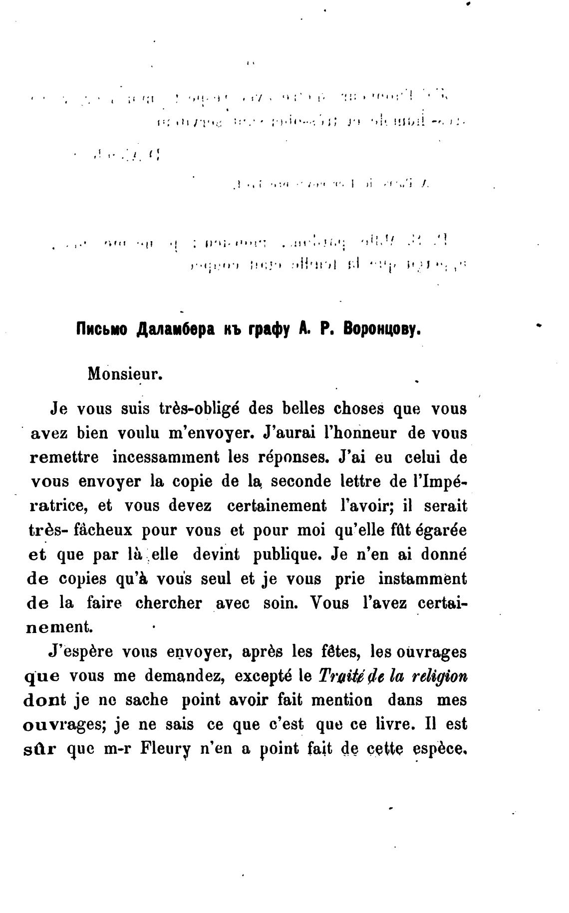 Письмо Даламбера кь графу А.