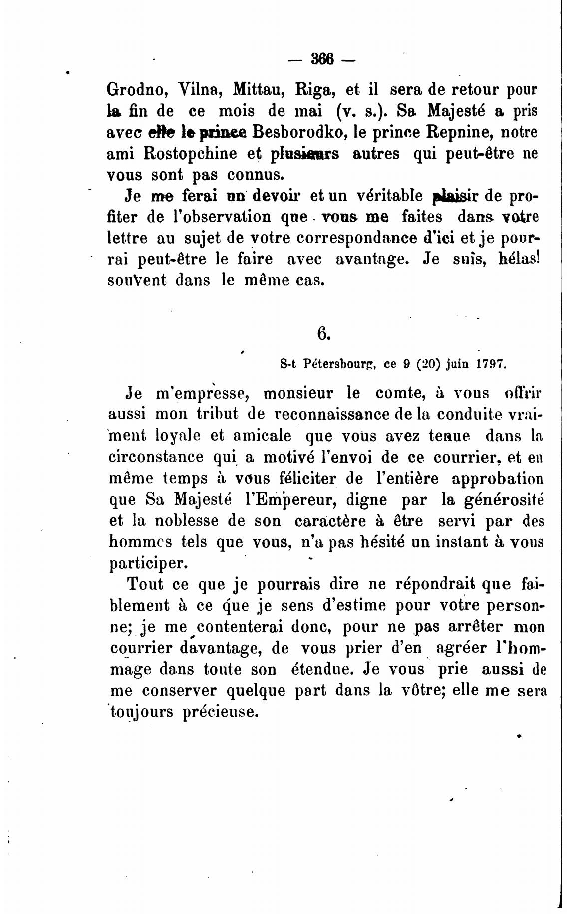 S-t P6tersbourg, се 9 (20) juin 1797.