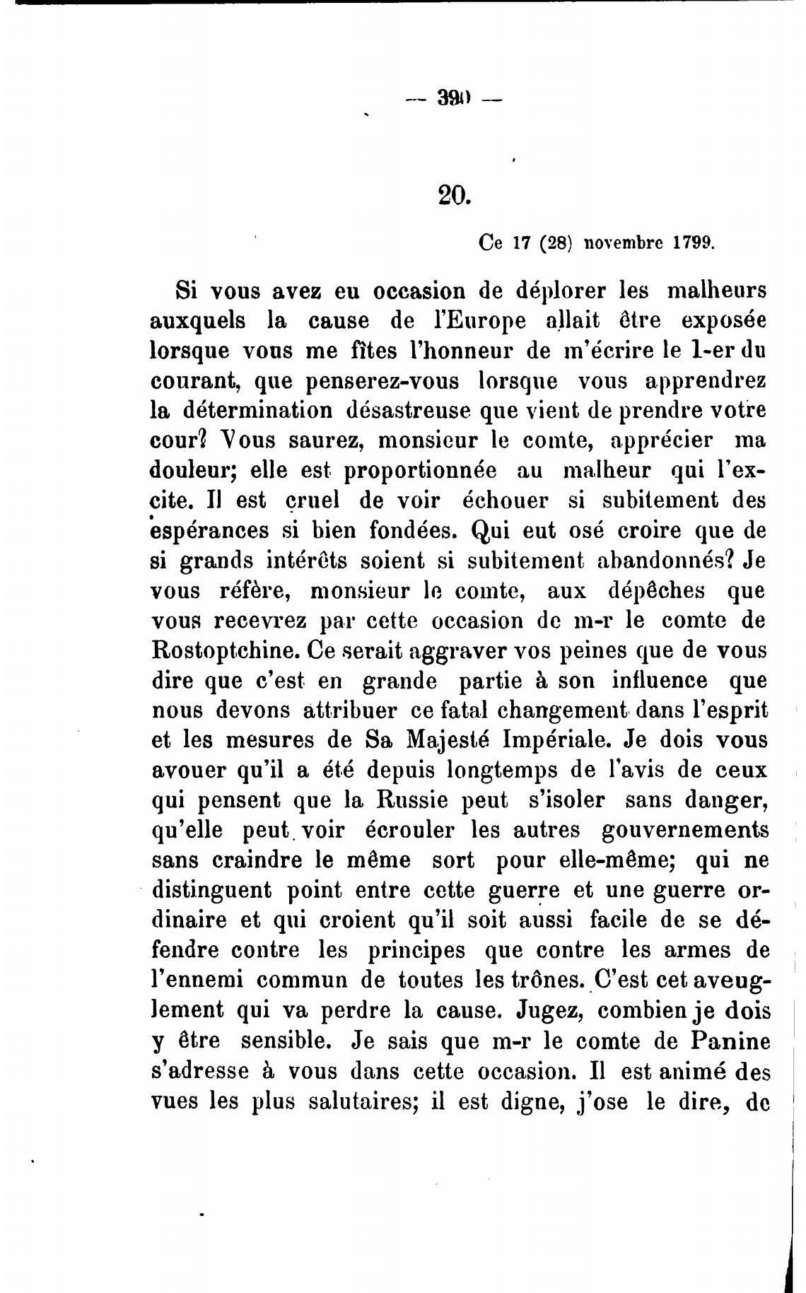 Rostoptchine. Се serait aggraver vos peines que de vous