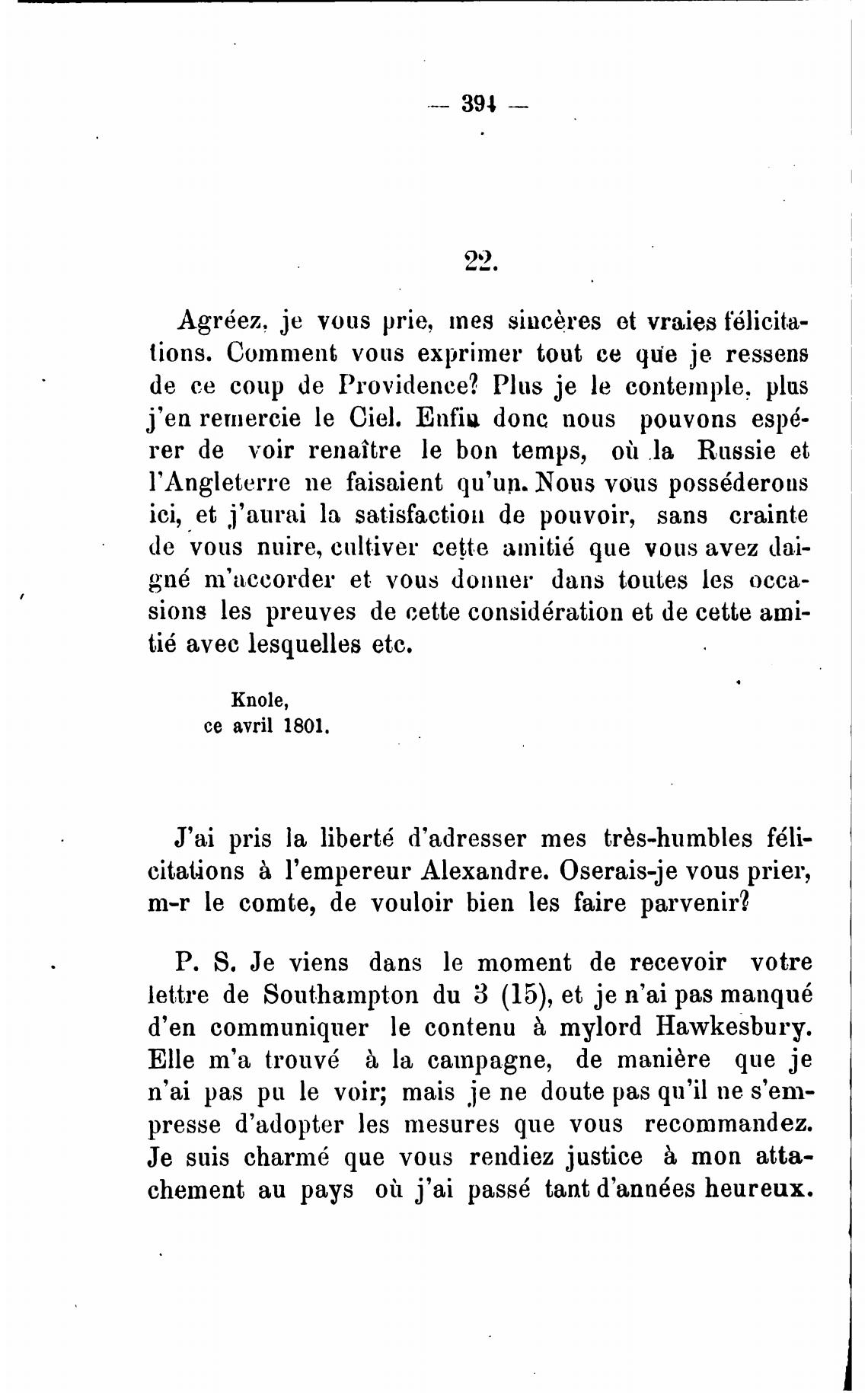 d'en communiquer le contenu mylord Hawkesbury.