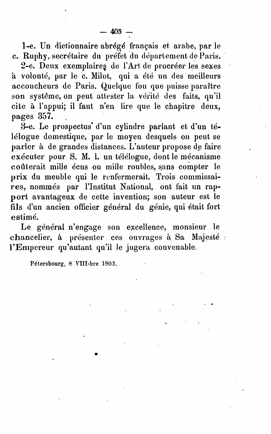 P6tersbourg, 8 VIII•bre 1802.