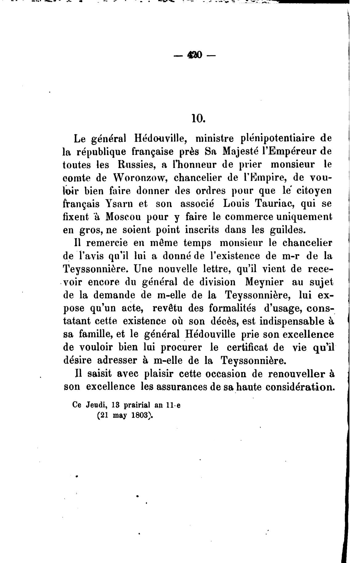 Le g6n6ral He{douville, ministre plbnipotentiaire de