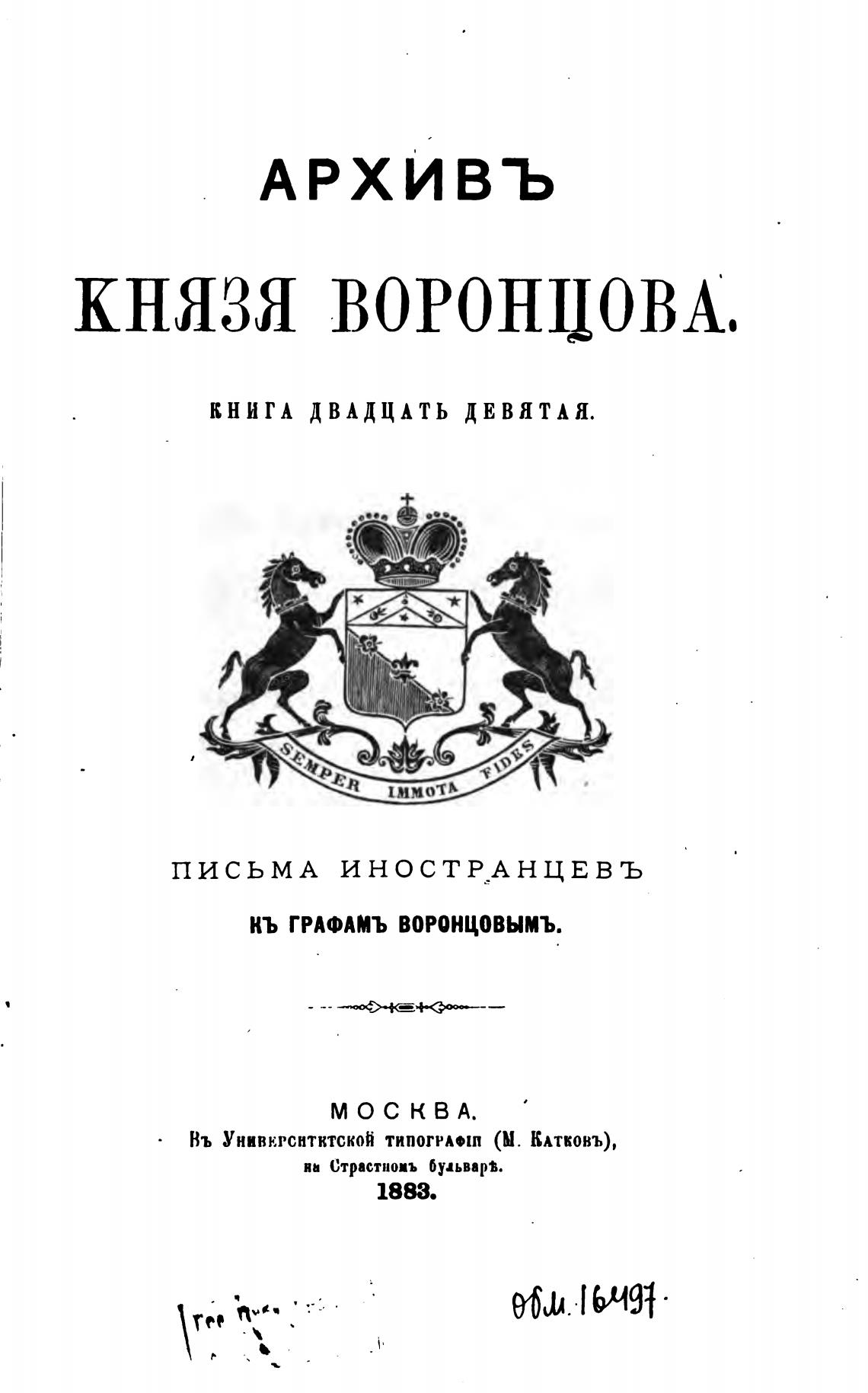КЬ ГРАФАМЪ ВОРОНЦОВЫМЪ.