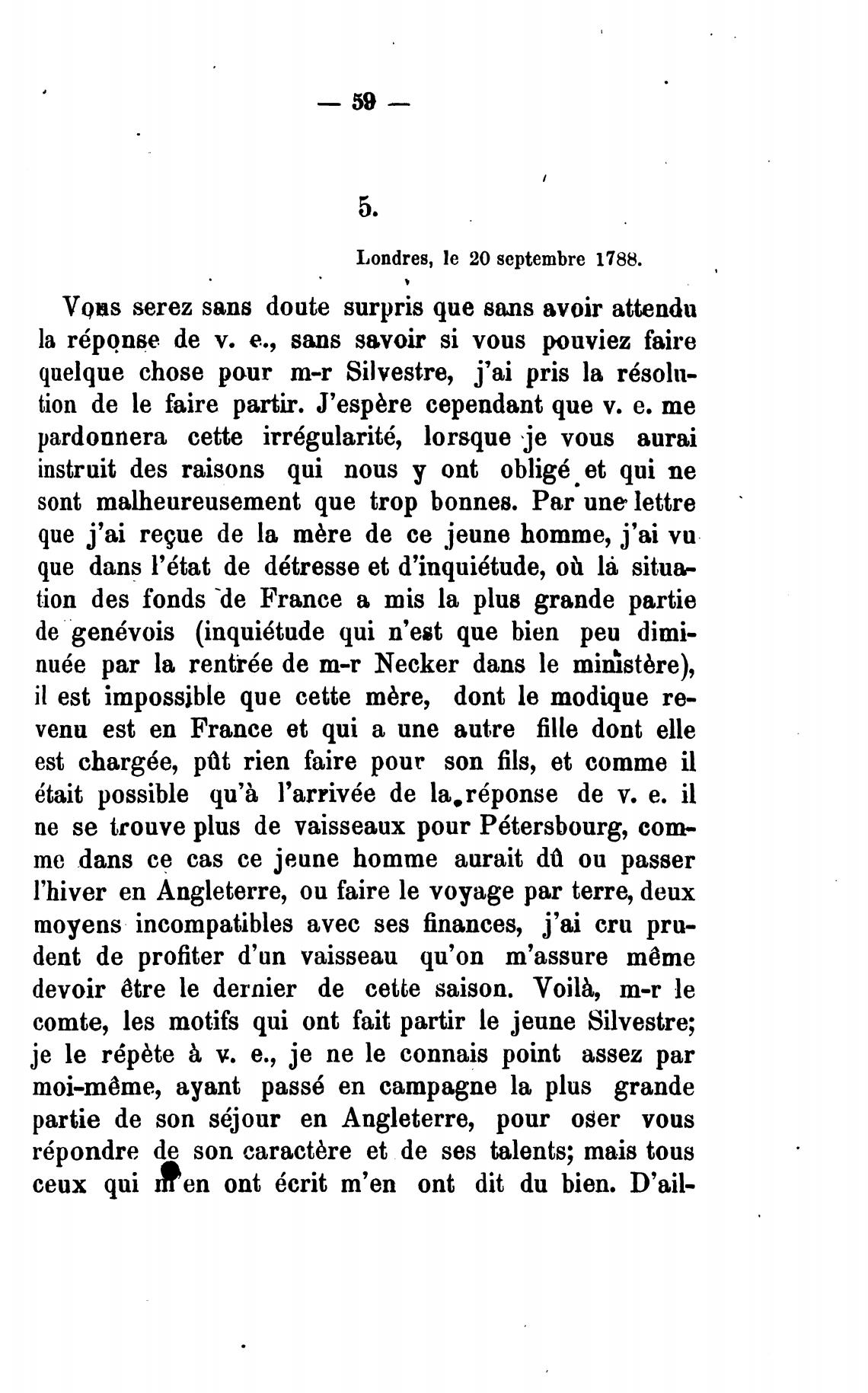 comte, les motifs qui ont fait partir le јеипе Silvestre;