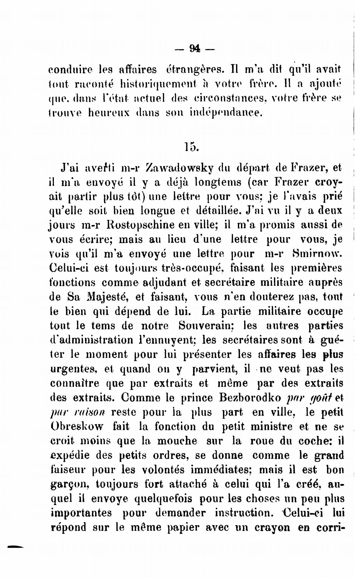 des extraits. Сотте le prince Bezborodko 1)ftr .qoif et