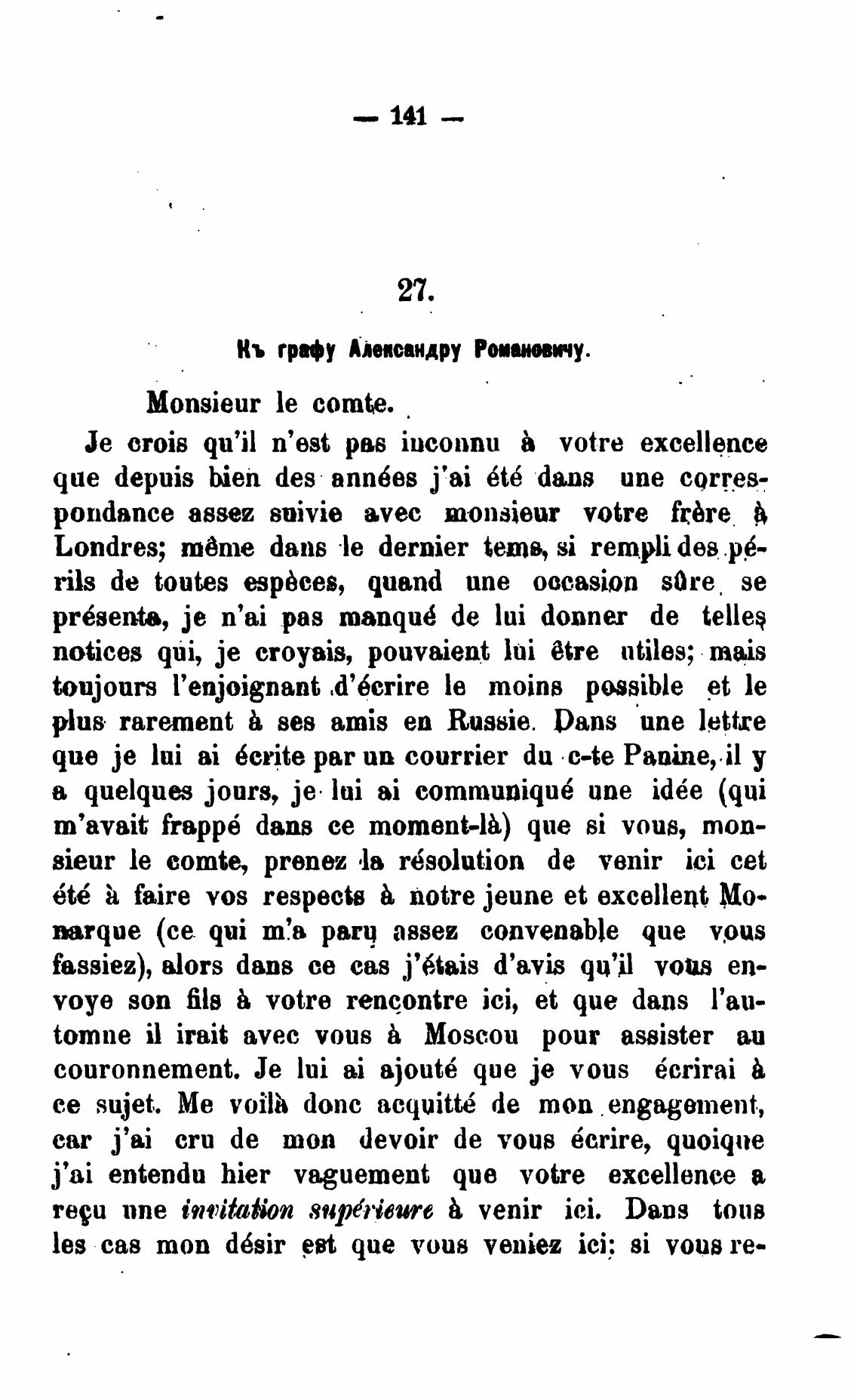 Кь графу Алевсандру Роиивжу.