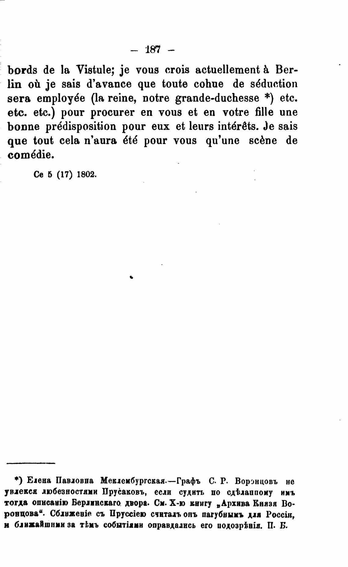 * ) Едена Павловна Мекленбургская.—Графъ С. Р. Воронцовъ не