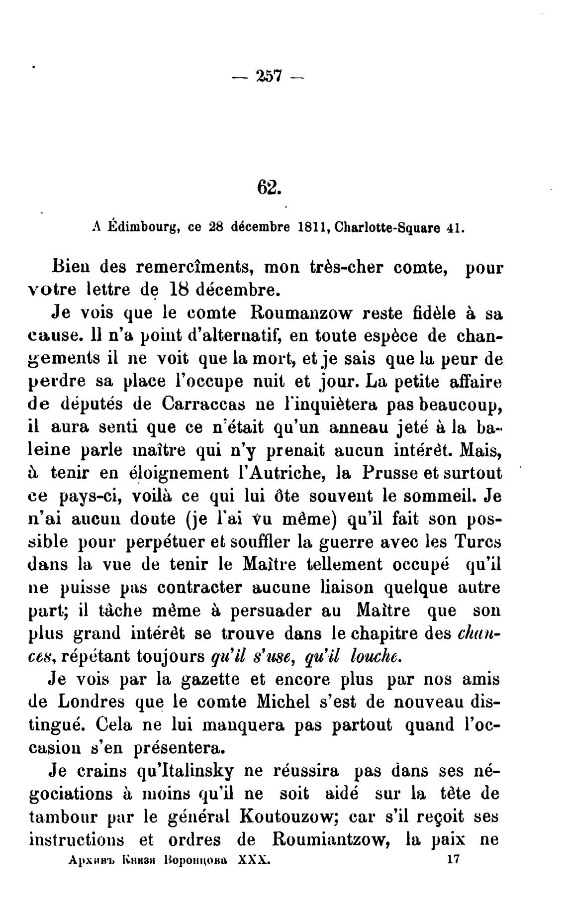 Л bdimbourg, се 28 d6cembre 1811, Charlotte-Square 41.