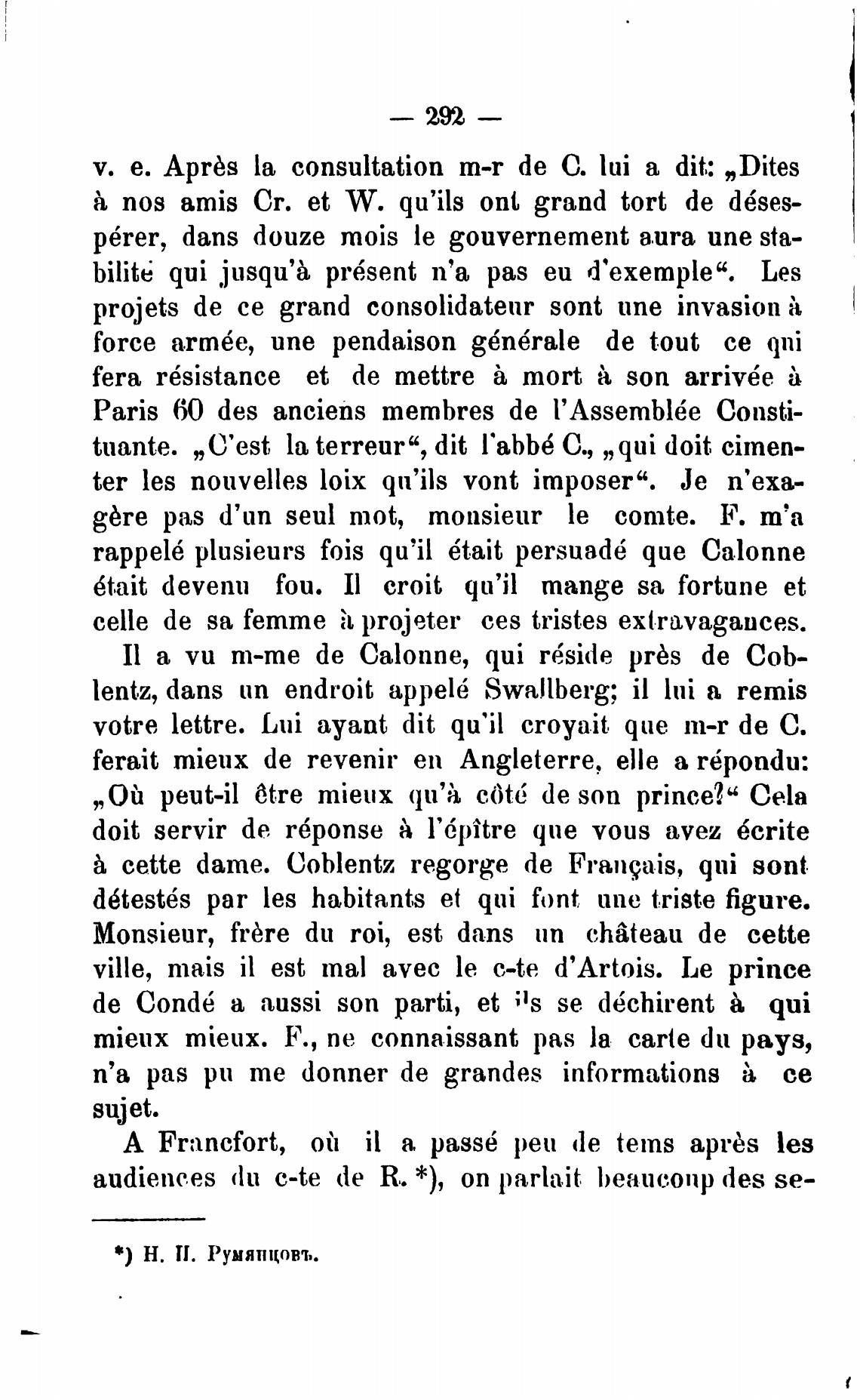 Il а vu т-те de Calonne, qui r6side prbs de Cob-