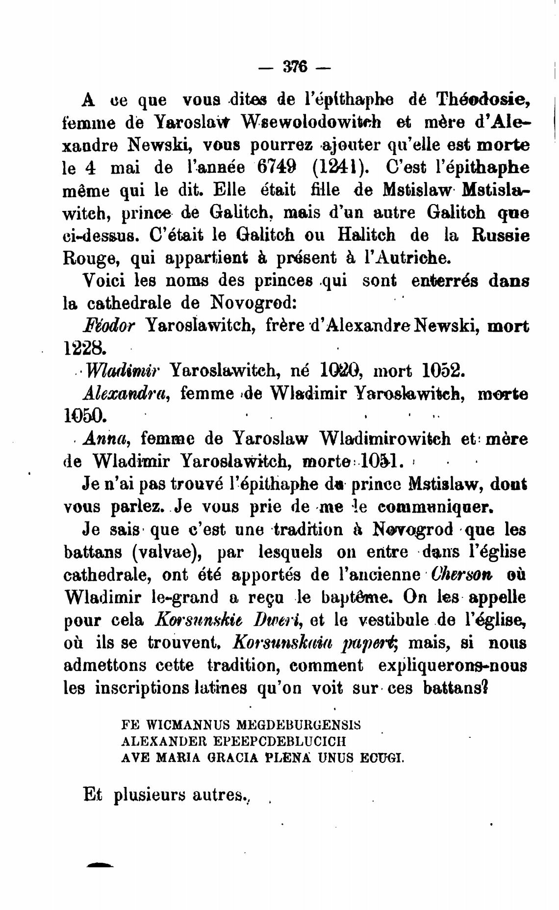 Је n'ai pas trouv6 l'6pithaphe da prince Mstislaw, dont