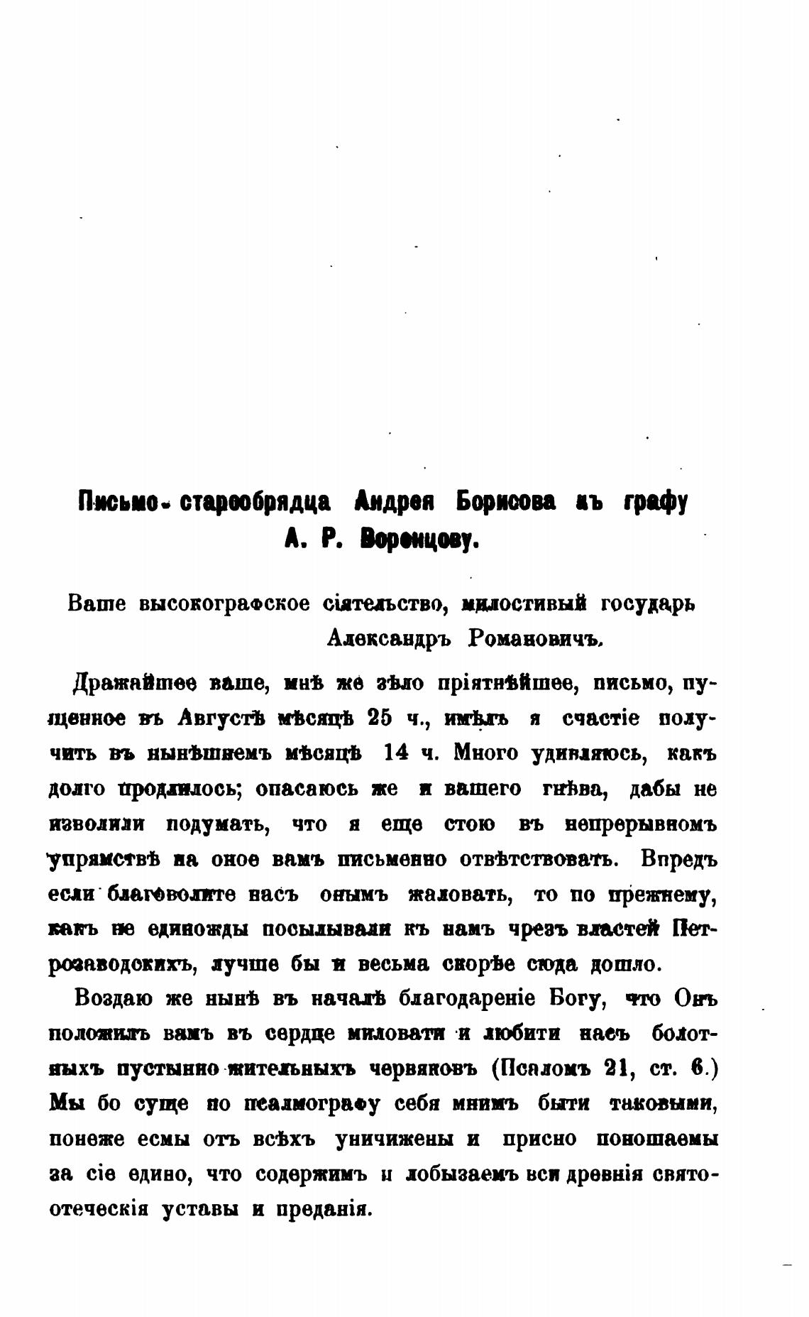 Письмо, старшбрядца Аидрея Борпова въ графу