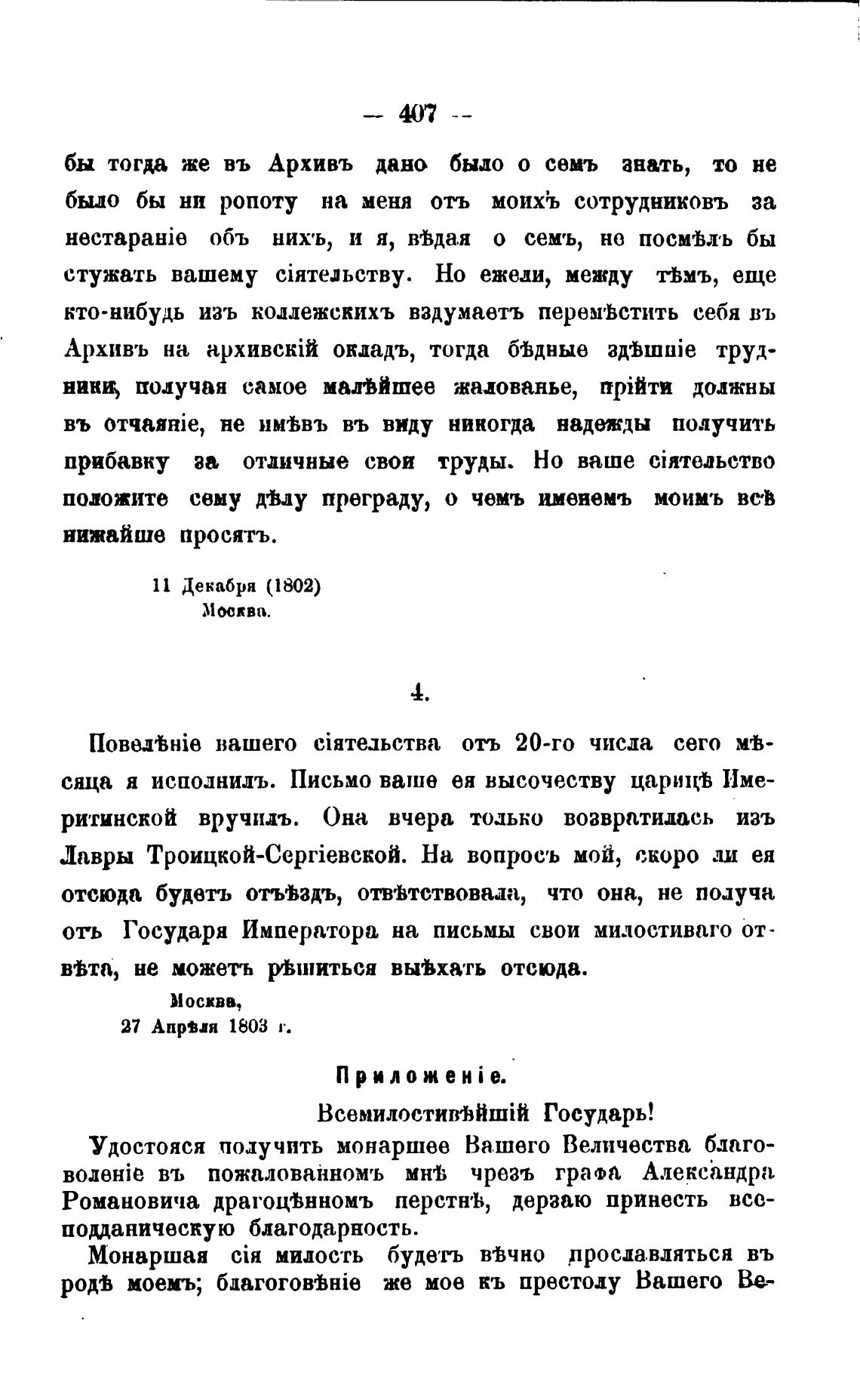 отъ Государя Императора на письмы свои милостиваго от-