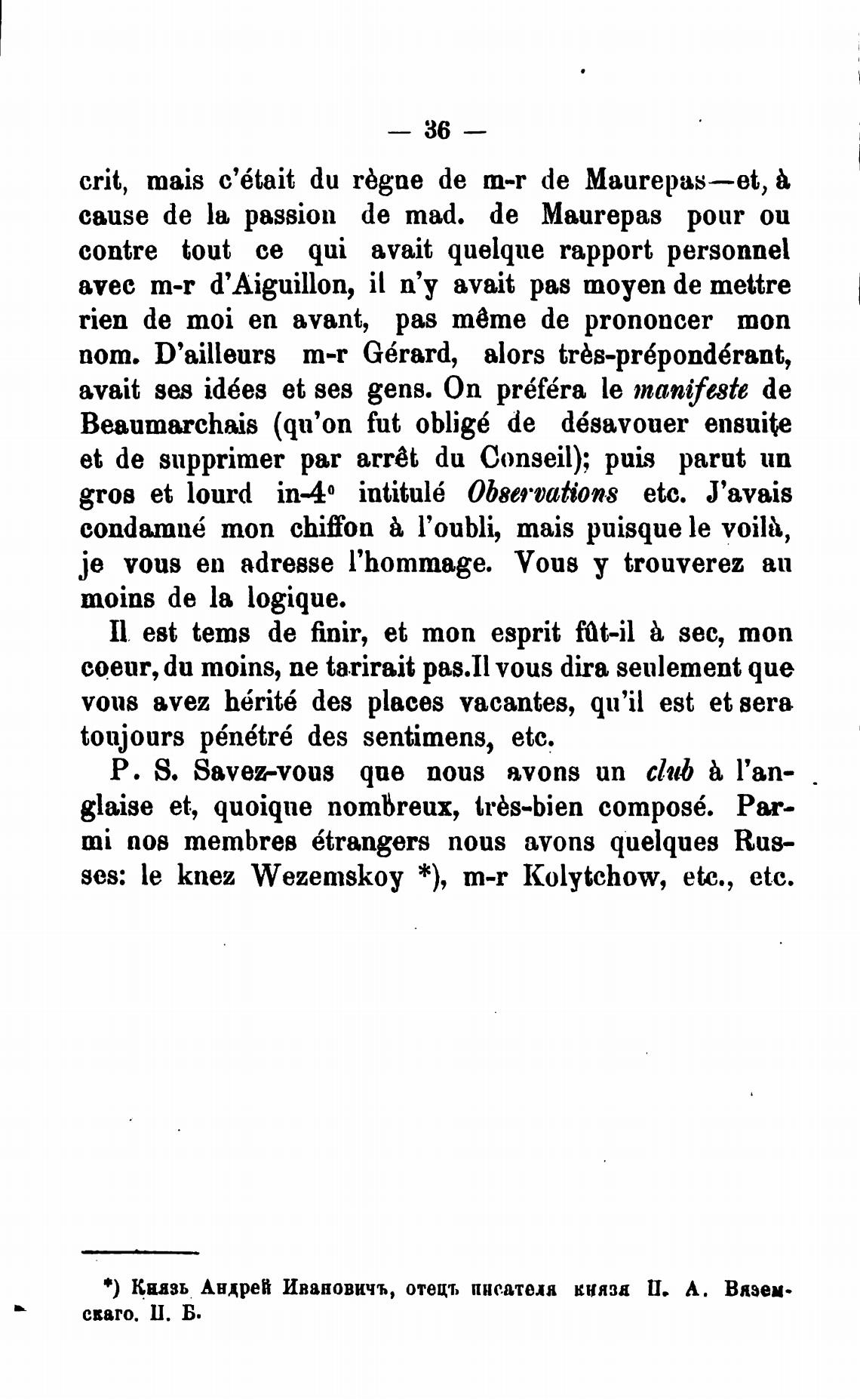 ses: le knez Wezemskoy *), m-r kolytchow, etc., etc.