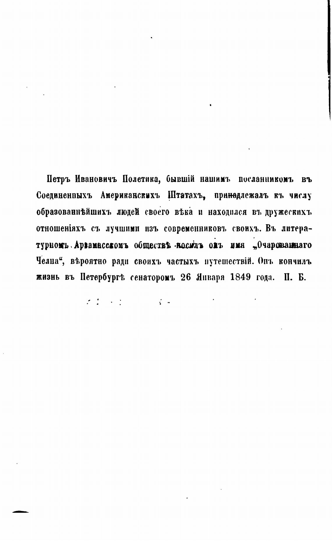 жизнь въ Петербург1; сенаторомъ 26 Января 1849 года. П. Б.