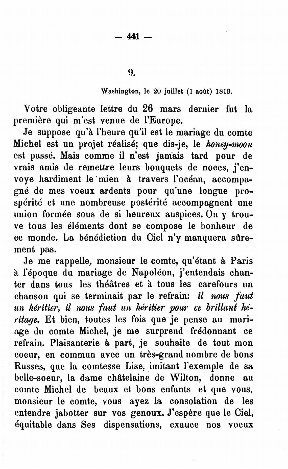Washington, le 20 juillet (1 aott) 1819.